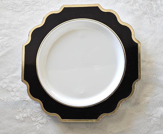" OCCASIONS " 80 Plates Pack,(40 Guests) Heavyweight Premium Wedding Party Disposable Plastic Plates Set -40 x 10.5'' Dinner + 40 x 8'' Salad/Dessert (Imperial in Black & Gold)