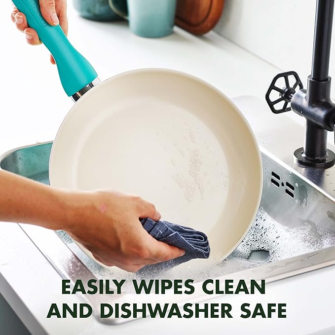 GreenPan Rio Healthy Ceramic Nonstick 7" 9.5" and 11" Frying Pan Skillet Set, PFAS-Free, Dishwasher Safe, Turquoise