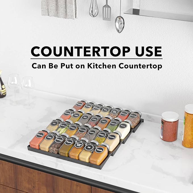 About This Complete Drawer Spice Organizer Set: 1 x Drawer Spice Rack, 28 x Square Empty Glass Spice Jars, 386... Read more