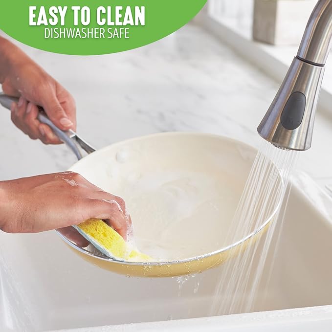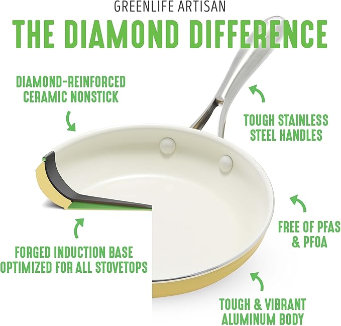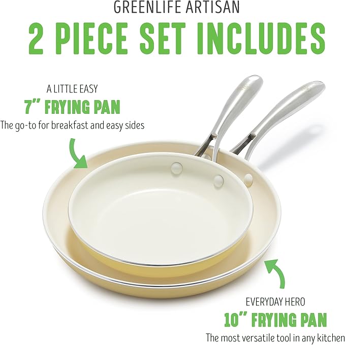 GreenLife Artisan Healthy Ceramic Nonstick, 8" and 10" Frying Pan Skillet Set, Stainless Steel Handle, Induction, PFAS-Free, Dishwasher Safe, Oven Safe, Yellow