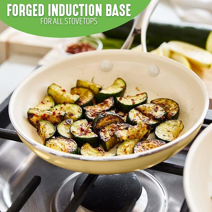 About This Set includes: 8" frying pan and 10" frying pan Our healthy and easy-to-clean ceramic nonstick coating is derived... Read more