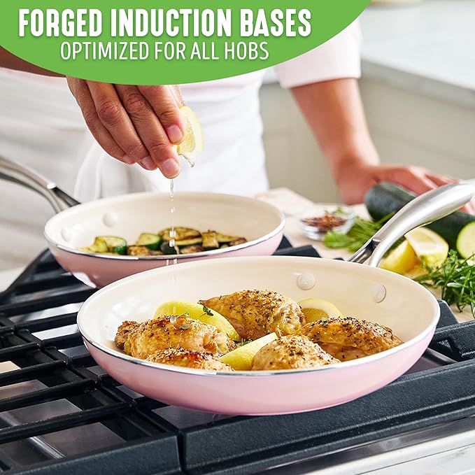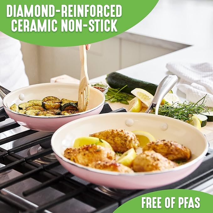 About This SET INCLUDES: 8" frying pan and 10" frying pan TOXIN-FREE: Our healthy ceramic nonstick coating is derived from... Read more