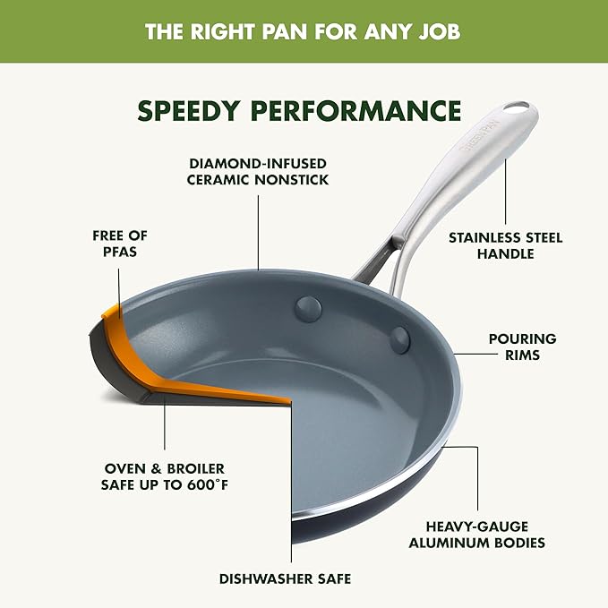 About This REINFORCED WITH DIAMONDS: Metal utensil safe, GreenPan's original diamond-infused nonstick coating offers remarkable durability, balanced heating, and effortless... Read more