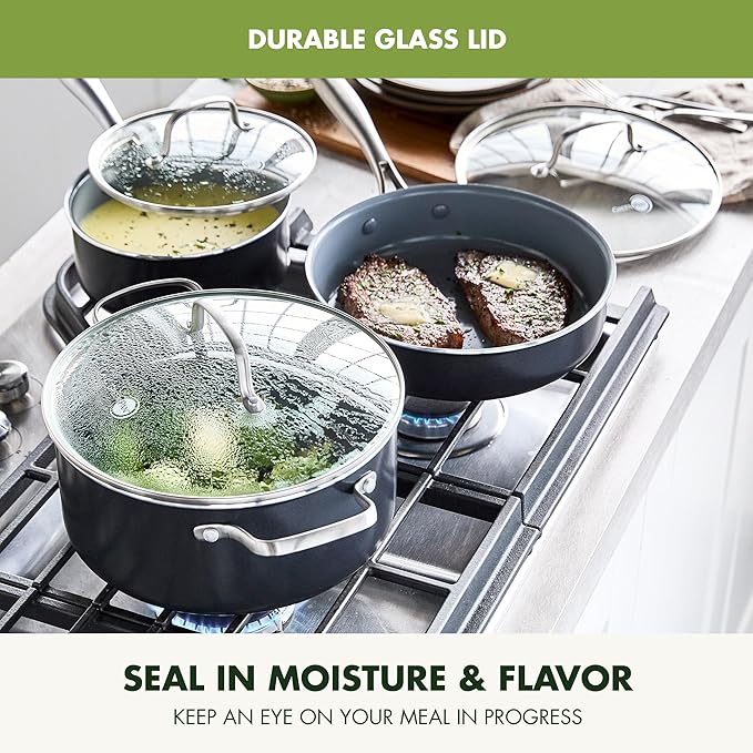 GreenPan Swift Healthy Ceramic Nonstick, 12" Frying Pan Skillet with Lid, Stainless Steel Handle, PFAS-Free, Dishwasher Safe, Oven Safe, Black