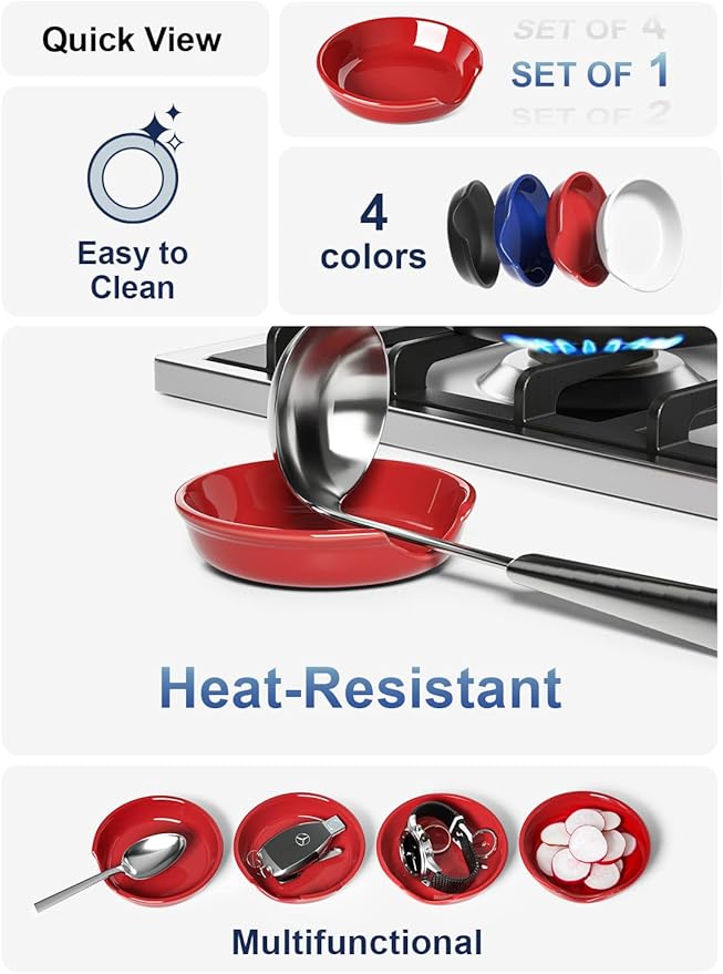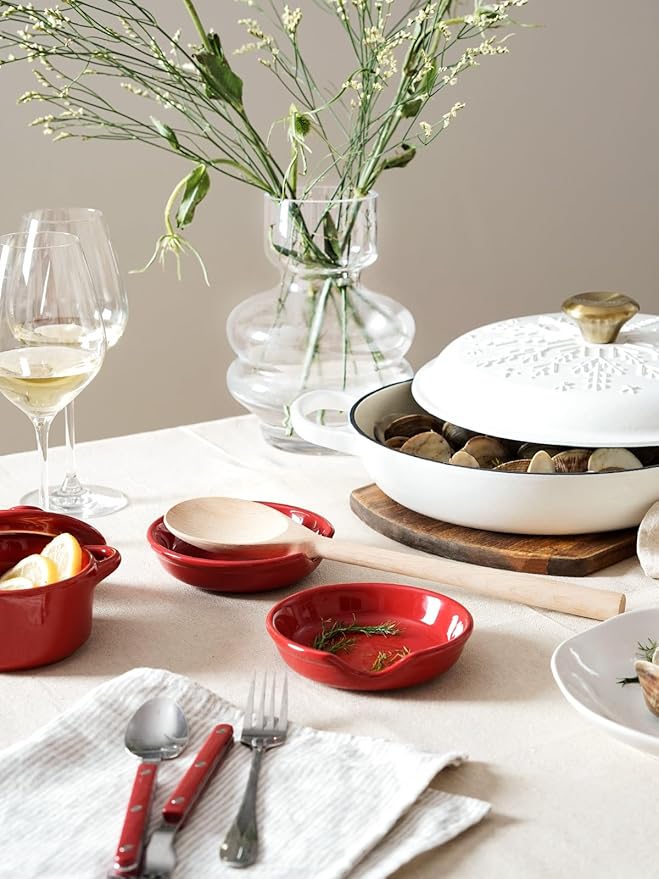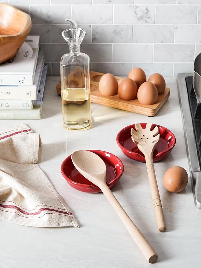 LE TAUCI Ceramic Spoon Rest, 4.8 Inch Spoon Rest for Stove Top, Spoon Holder for Kitchen Counter, Coffee Spoon rest, Utensil Rest for Cooking, Red