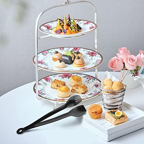 MSY BIGSUNNY Small Serving Tongs - 6 Inches Premium Stainless Steel Appetizer Tongs, Set of 4 (Black, 6")