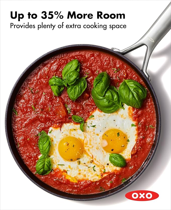 OXO Professional 8" Frying Pan Skillet, Hard Anodized Ceramic Nonstick Cookware PFAS-Free, Induction Suitable, Stainless Steel Handle, Diamond Reinforced Coating, Dishwasher Safe, Oven Safe, Black