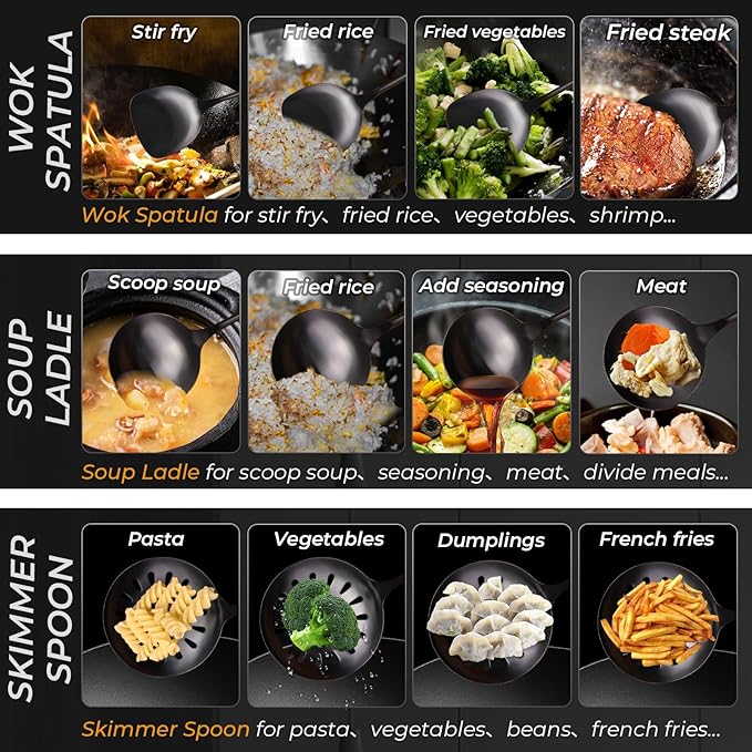 About This Spatula & Ladle Wok Tool Set - Wok spatula set includes 15" spatula & 14.8" ladle,14.9" skimmer and... Read more