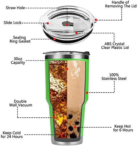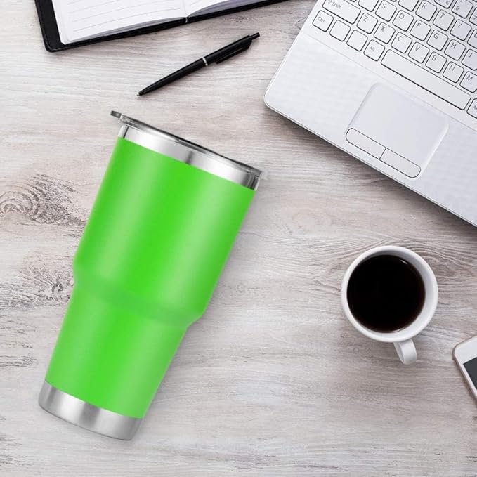 D·S 30 oz Green Tumbler Stainless Steel Double Wall Vacuum Insulated Mug with Straw and Lid, Cleaning Brush for Cold and Hot Beverages