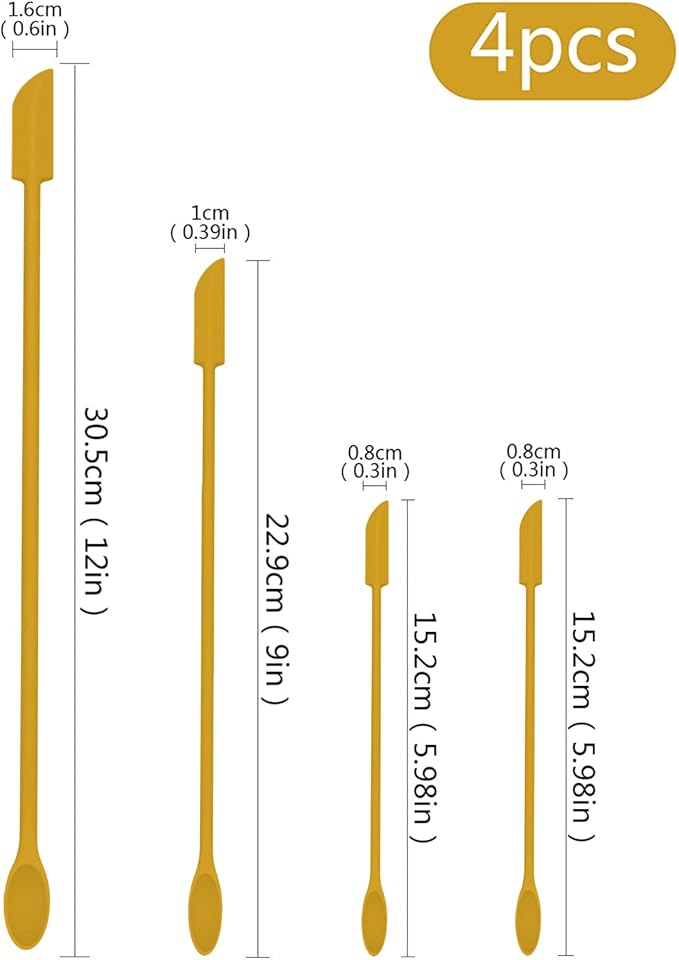 Mini Spatula Silicone Spatula Set - 4pcs Small Makeup Scrapers for Cosmetics, Reusable Beauty Tiny Tools, Thin Jar Scraper, Get the Last of the Makeup Out of the Bottle(Yellow)