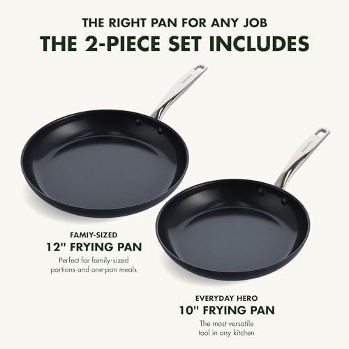 About This COOKWARE SET INCLUDES: 10” Frying Pan and 12” Frying Pan. REINFORCED WITH DIAMONDS: Metal utensil safe, GreenPan's original... Read more