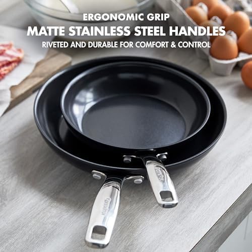 GreenPan Chatham Prime Midnight Hard Anodized Healthy Ceramic Nonstick, 10" and 12" Frying Pan Skillet Set, PFAS-Free, Dishwasher Safe, Oven Safe, Black