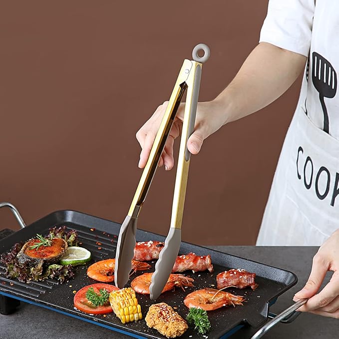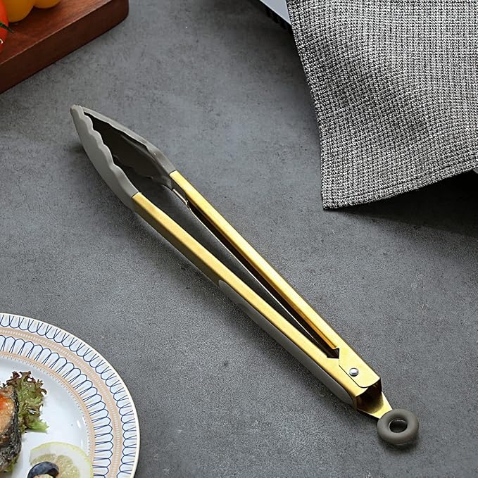 Gold Cooking Tongs, Berglander Heavy Duty Food Tongs For Cooking With Silicone Tips And Titanium Gold Plating Handle, Kitchen Tongs, Grill Tongs, Dishwasher Safe, Easy to Clean