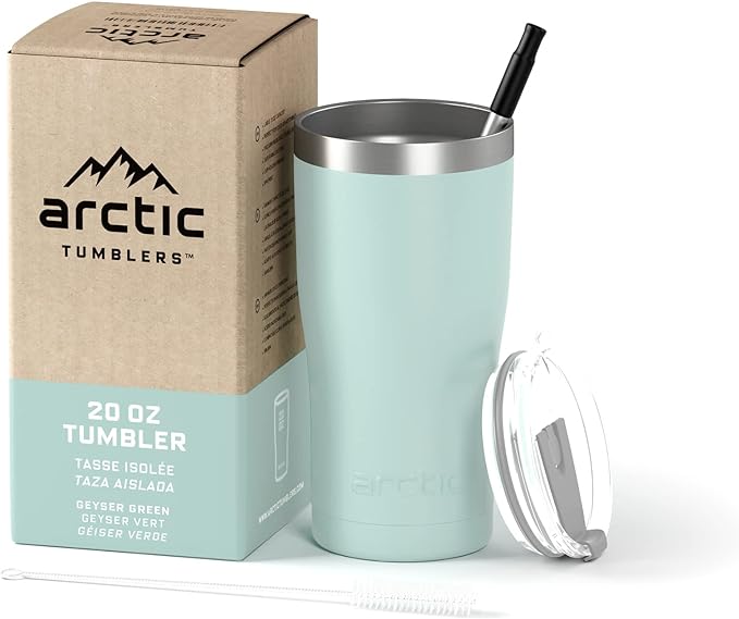 Arctic Tumblers | 20 oz Light Green Insulated Tumbler with Straw & Cleaner - Retains Temperature up to 24hrs - Non-Spill Splash Proof Lid, Double Wall Vacuum Technology, BPA Free & Built to Last