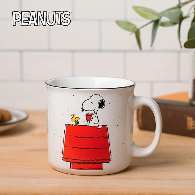 Silver Buffalo Peanuts Snoopy and Woodstock Get Cozy Ceramic Camper Mug, 20 Ounces