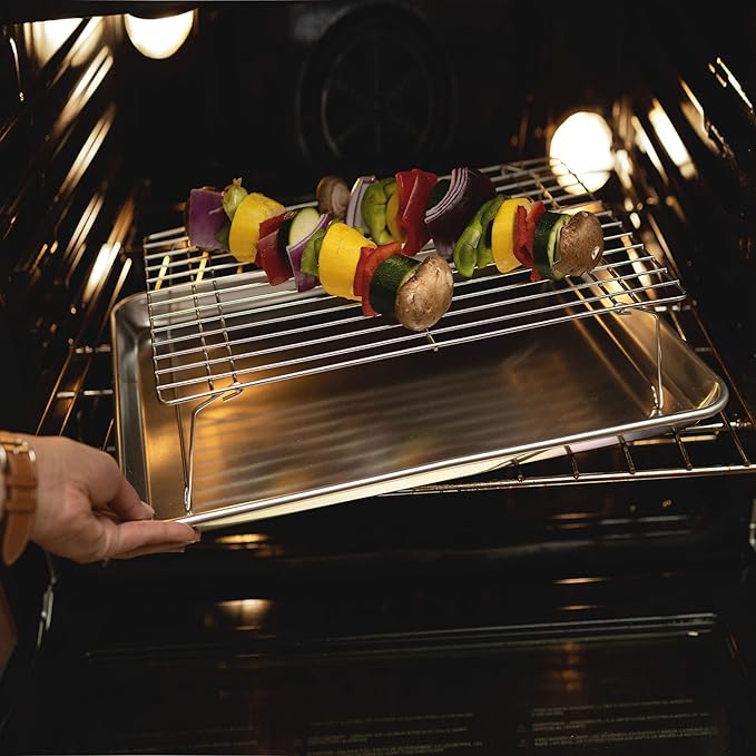 KITCHENATICS 4-Tier Stackable Cooling Racks for Baking, 100% Stainless Steel Wire Rack, Oven Safe Baking Rack, Oven Rack for Pizza, Cake, Bread, Cooling Rack for Cooking and Baking, Cookie Rack 15x10