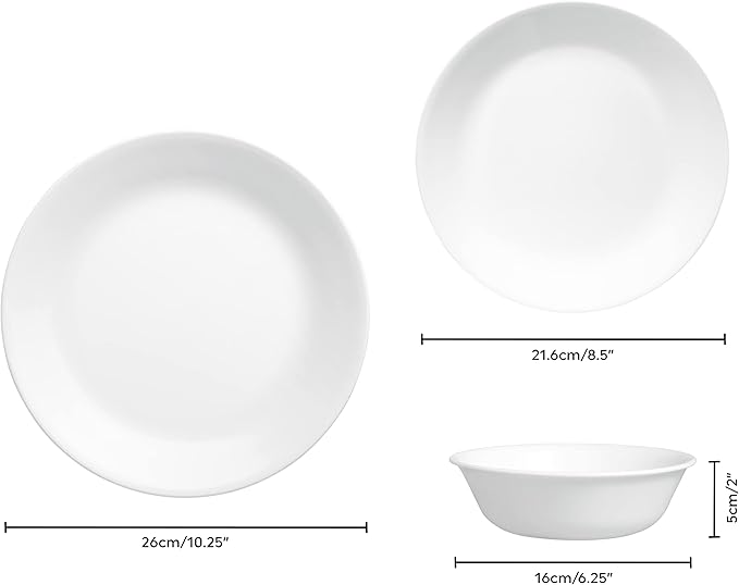 Corelle Dinnerware Set (12pc Set, Winter Frost White)-Dinner Set for 4 | 4 x Dinner Plates, Side Plates & Bowls