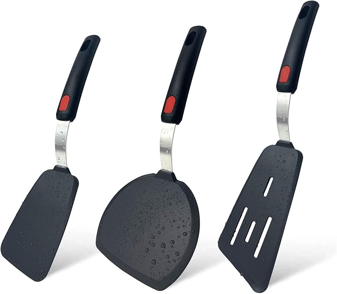 Tenta Tenta Kitchen 3 Pack Flexible Silicone Spatula Turner Set Slotted Fish Spatula-600F Heat Resistant,Wide Slotted Turners Spatulas,Omelet Spatulas for Flipping Eggs,Burgers,Crepes Etc, Grey/Black