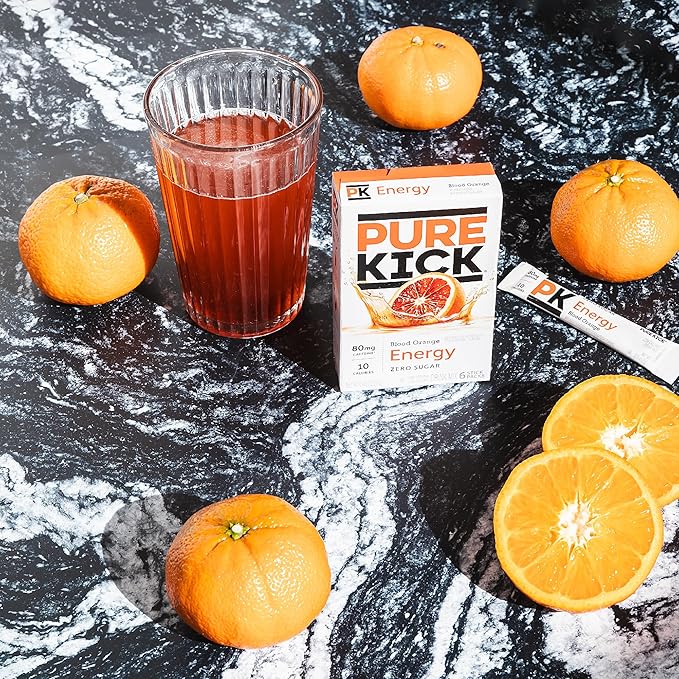 Pure Kick Energy Singles To Go Drink Mix, Blood Orange, Includes 12 Boxes with 6 Packets in each Box, 72 Total Packets