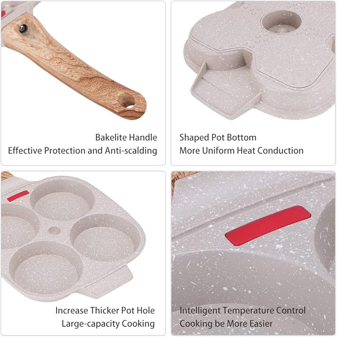 About This ✅4-Cup Egg Frying Pan - This egg frying pan uses a four-hole design, which is perfect for cooking... Read more