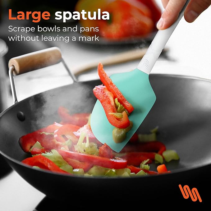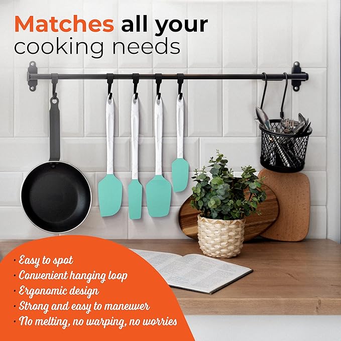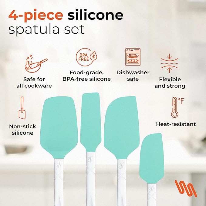 M KITCHEN Silicone Spatula Set - Heat Resistant & BPA Free - 4 Piece Nonstick Rubber Spatulas, Spoonula, Jar Scraper for Cooking, Baking, Mixing, Frosting - Dishwasher Safe Kitchen Utensils