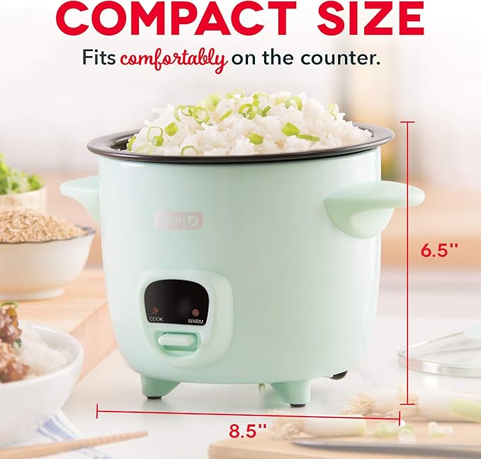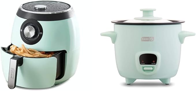 Dash DFAF455GBAQ01 Deluxe Electric Air Fryer + Oven Cooker, 6 Quart, 6 qt, Aqua & DRCM200GBAQ04 Mini Rice Cooker Steamer with Removable Nonstick Pot, Keep Warm Function & Recipe Guide, Aqua