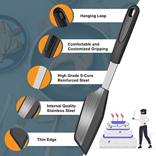 Silicone Spatulas, Offset Spatulas, Waterproof Mixer GEEKHOM 600F Heat Resistant Extra Large and Wide Flexible Spatulas Rubber Turners,1 PACK LONG Kitchen Cooking Utensils Set for Pancake