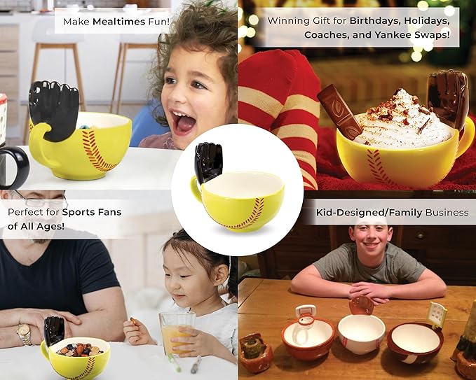 About This Big Funny Coffee Mug – Interactive ceramic softball cereal/soup/rice bowl with a glove. Fun for tossing marshmallows into... Read more