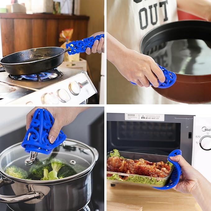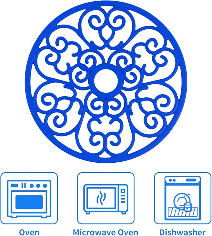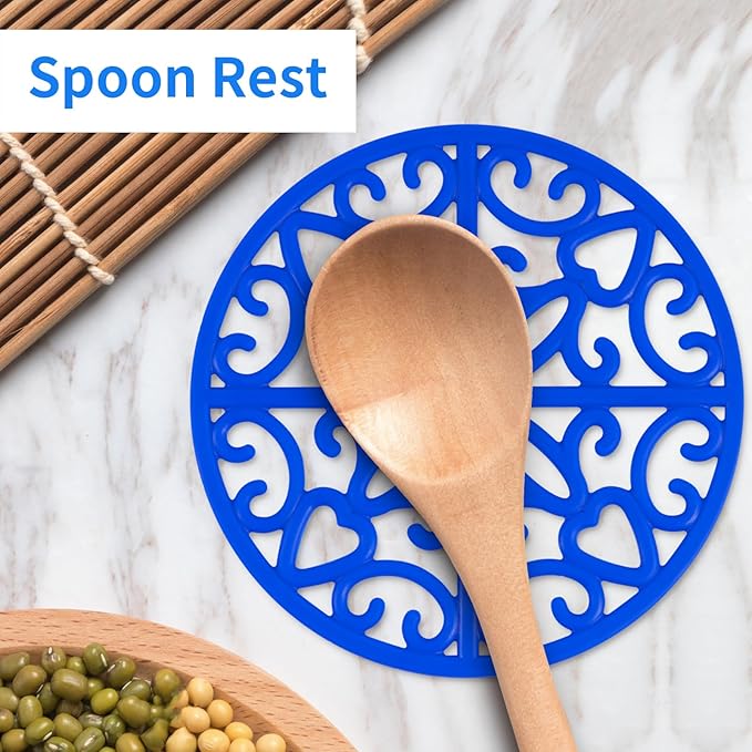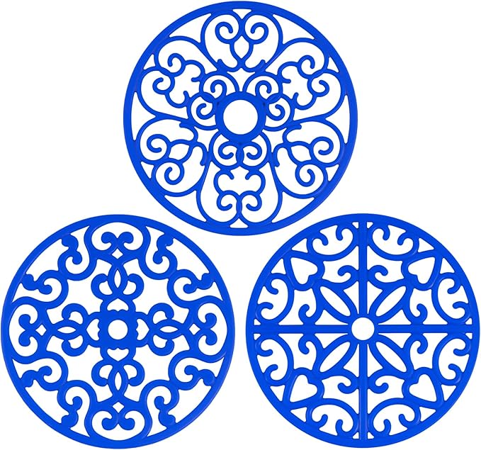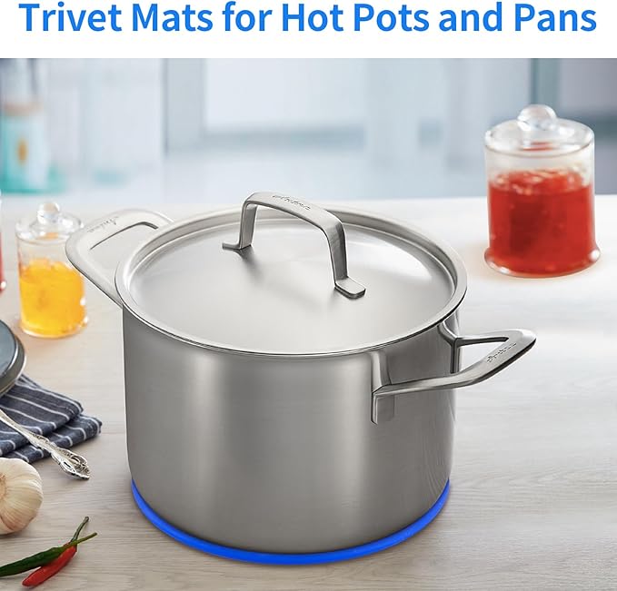 CHEFBEE 3PCS Silicone Trivet Mat - Flexible Non-Slip Heat Resistant Modern Kitchen Teapot Trivets Set for Hot Dishes, Table, Countertop Blue