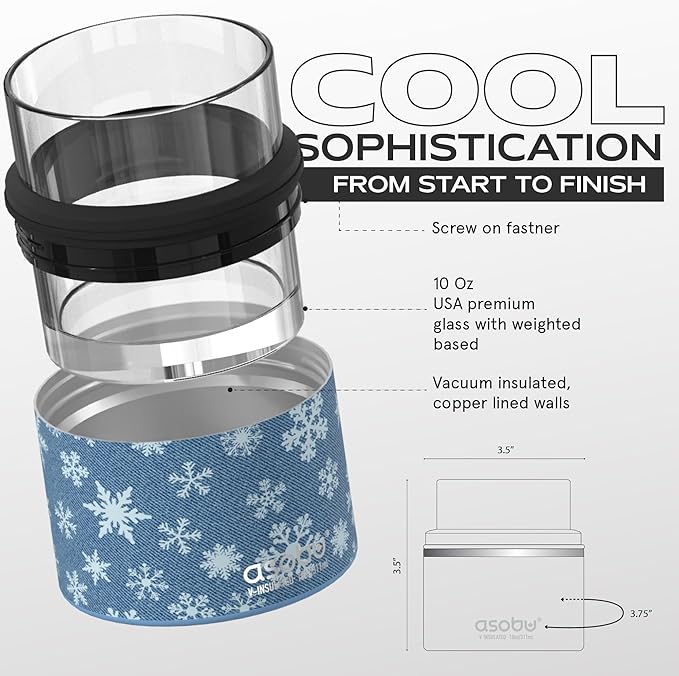 asobu Whiskey Sleeve Glass – Insulated Bourbon Tumbler with Premium Rocks Glass, BPA-Free, Double-Wall Stainless Steel, Keeps Drinks Cold Longer, 10.5oz
