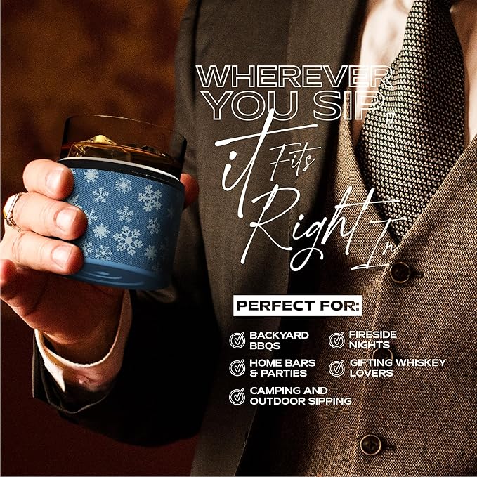 • Sip It Your Way: The double-wall insulation keeps your bourbon or whiskey cool for hours—no watered-down flavors or rushed sipping. The food-grade stainless steel sleeve keeps the chill in and the warmth out, making it a go-to for indoor gatherings or outdoor adventures alike.