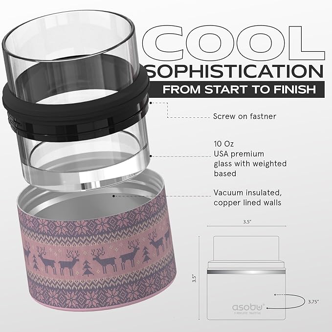asobu Whiskey Sleeve Glass – Insulated Bourbon Tumbler with Premium Rocks Glass, BPA-Free, Double-Wall Stainless Steel, Keeps Drinks Cold Longer, 10.5oz