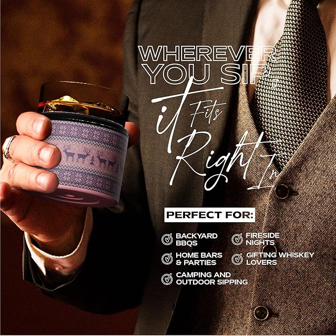 • Meet Your New Whiskey Essential! Raise the bar with our sleek and functional Whiskey Sleeve—crafted for whiskey lovers who savor every sip. This premium rocks glass comes wrapped in a stylish, double-wall insulated stainless steel sleeve to keep your drink cold, bold, and never diluted. Whether it’s neat, on the rocks, or cocktail-ready, this is the glass that does it all.