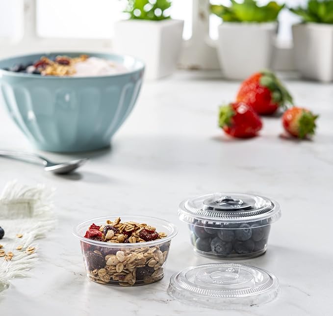 About This {3.25 oz - 100 Sets} Clear Diposable Plastic Portion Cups With Lids, Small Mini Containers For Portion Controll,... Read more