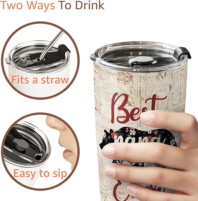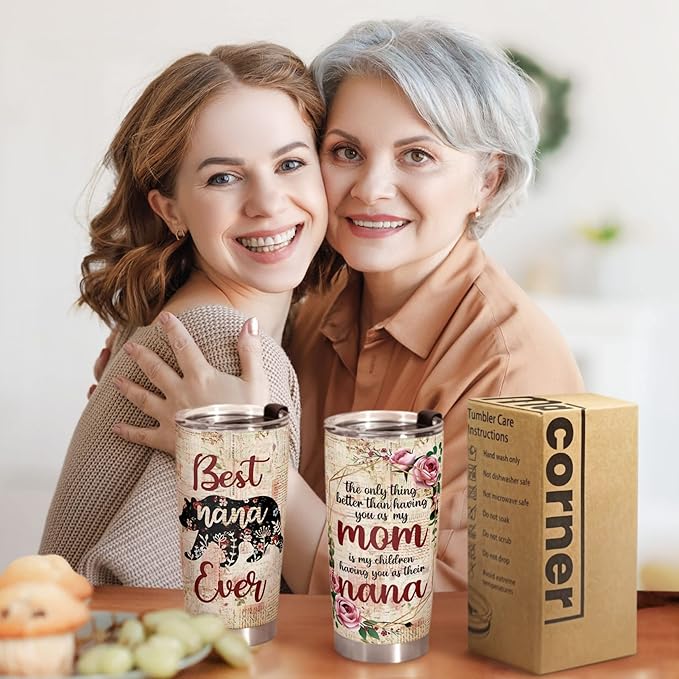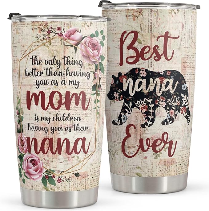 Macorner Mothers Day Gift for Nana & Mom From Daughter, Son for Grandma - Stainless Steel Bear Tumbler 20oz for Women
