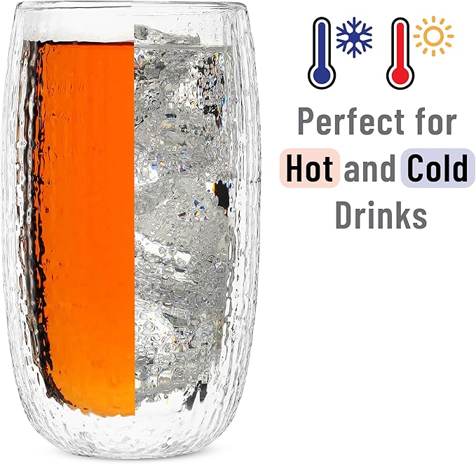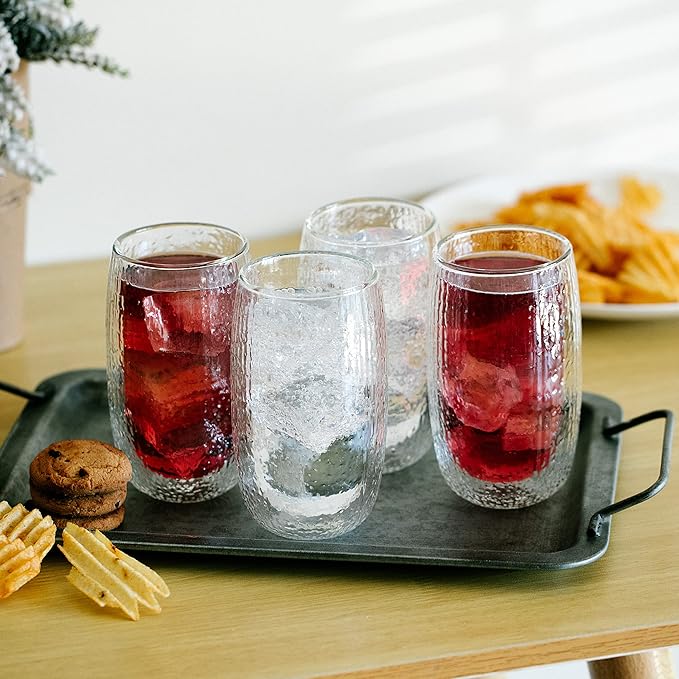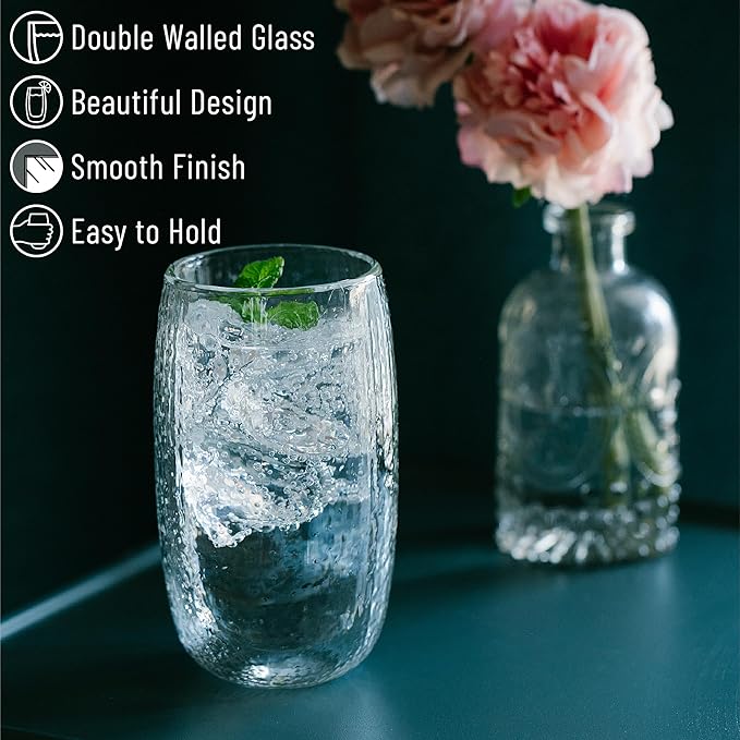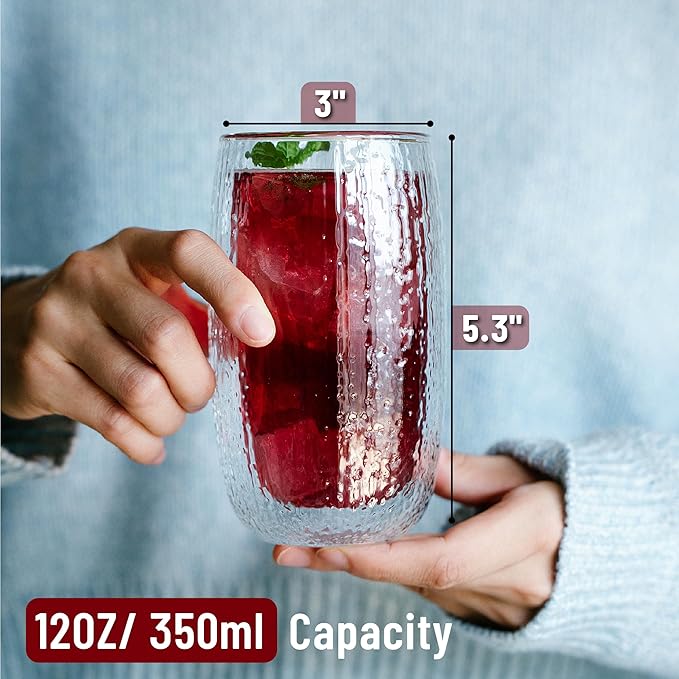 BTaT- Double Wall Glass Coffee Mugs, 4 Pack, 12 oz(350 ml), Double Glass Coffee Cups, Dotted Double Walled Glasses, Latte Glasses
