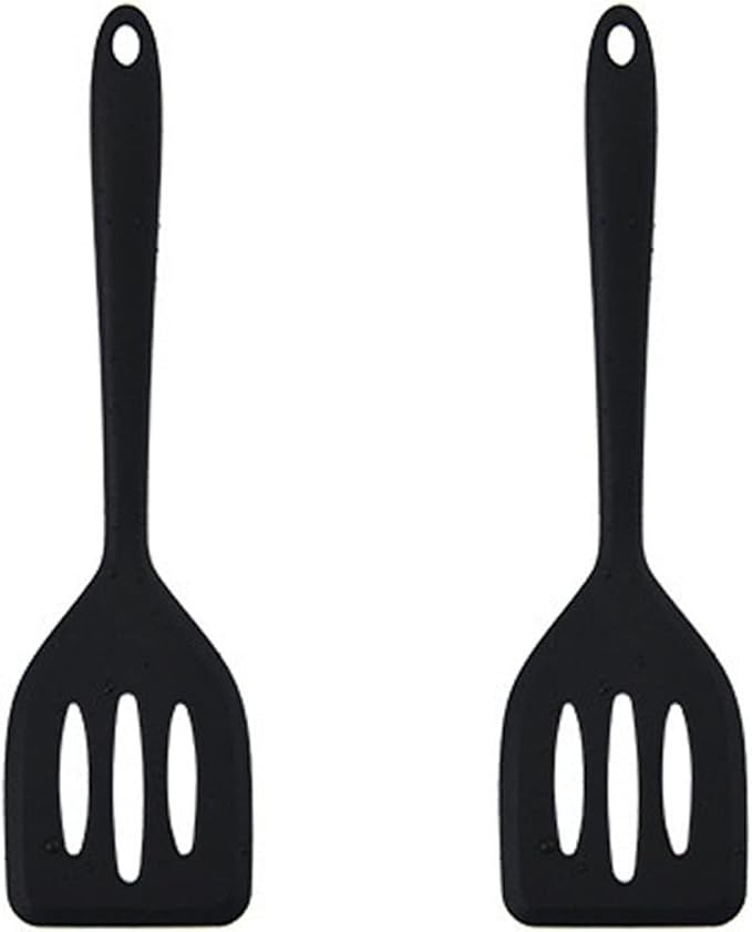 2Pack Small Silicone Turner High Heat Resistant Slotted Spatula for Fish, Eggs, Pancakes and More (12 IN, Black)