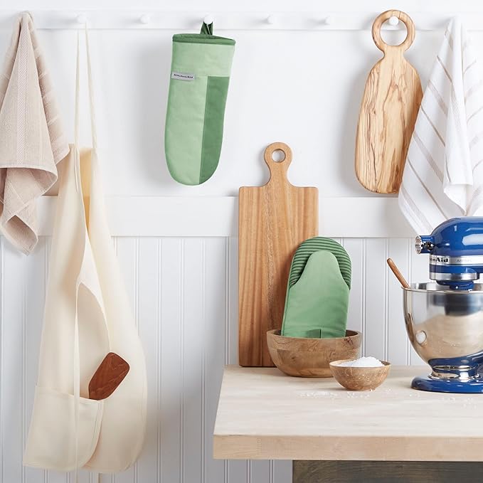KitchenAid Beacon Two-Tone Non-Slip Oven Mitt Set, Pistachio/Graphite Green, 5.75"x13", 2 Piece