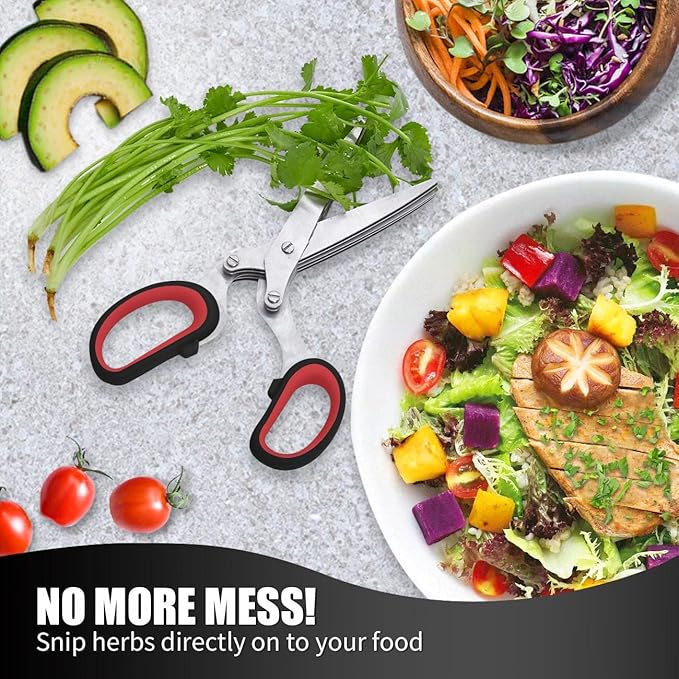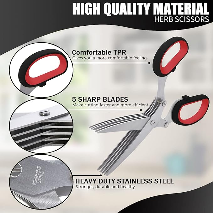 LHS Herb Scissors, Multipurpose 5 Blade Kitchen Herb Shears with Safety Cover, Kitchen Scissors for Chopping Basil Chive Parsley -Black