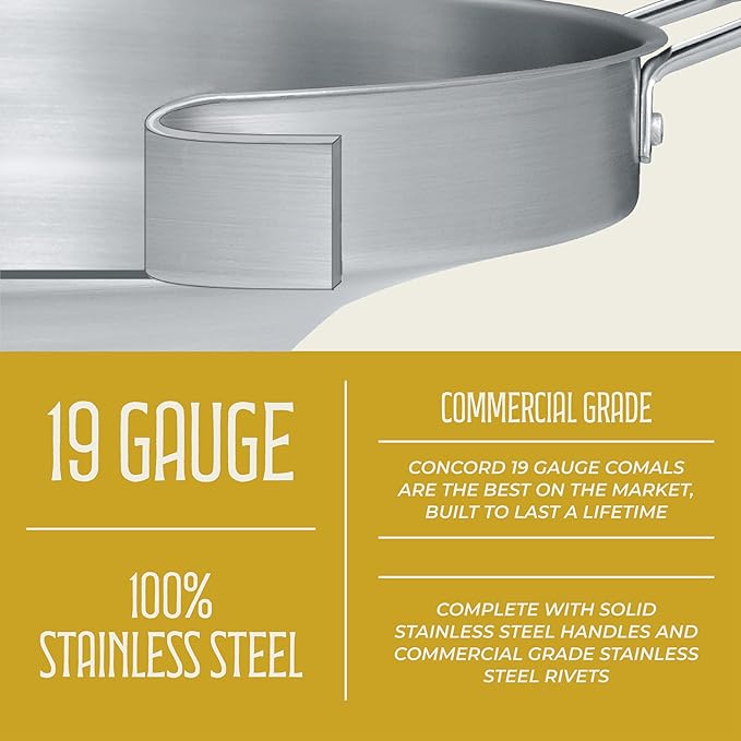 CONCORD Stainless Steel 3 Piece 22" Comal Cookware Set. Comales Discada Set