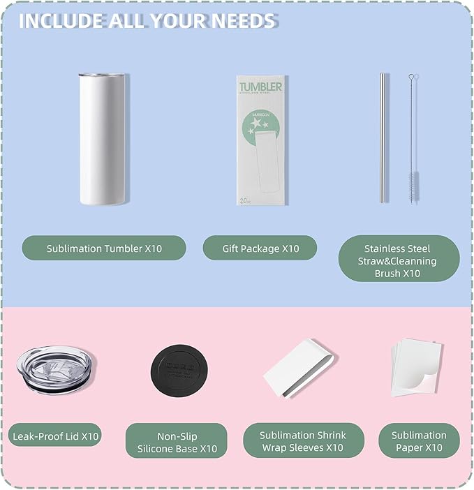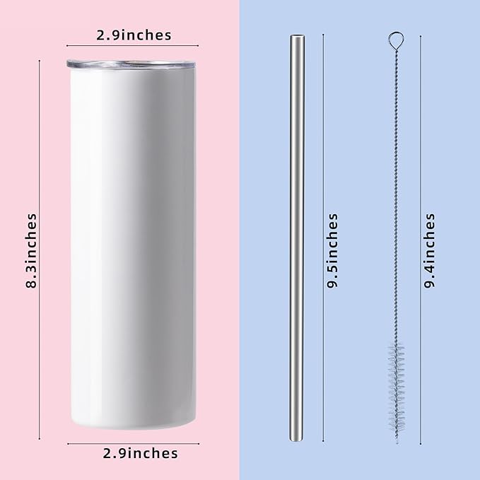 MURRICON Sublimation Tumblers 20 oz Skinny Straight,Stainless Steel Sublimation Blanks Skinny Tumbler,Double Wall Vacuum Insulated Tumblers,with lid and straw,10 Pack
