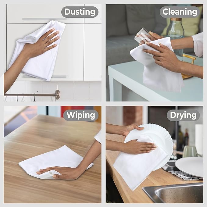 Urban Villa Flour Sack Kitchen Towels (27x27 Inches 12 Pack) Extra Large Premium White DishTowels 100% Cotton Flour Sack Kitchen Towels for Embroidery, DIY Projects, Cloth Diapers, Cheese Strainers