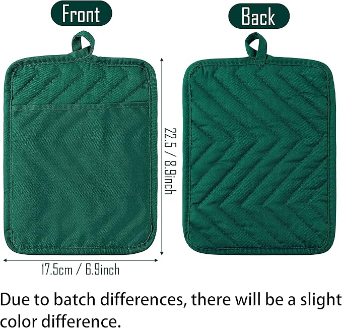 GROBRO7 5Pack Pocket Pot Holders Cotton Heat Resistant Potholder Multipurpose Hot Pads Machine Washable Oven Mitts Heat Pads for Daily Kitchen Baking and Cooking 8.9 x 6.9 in Dark Green
