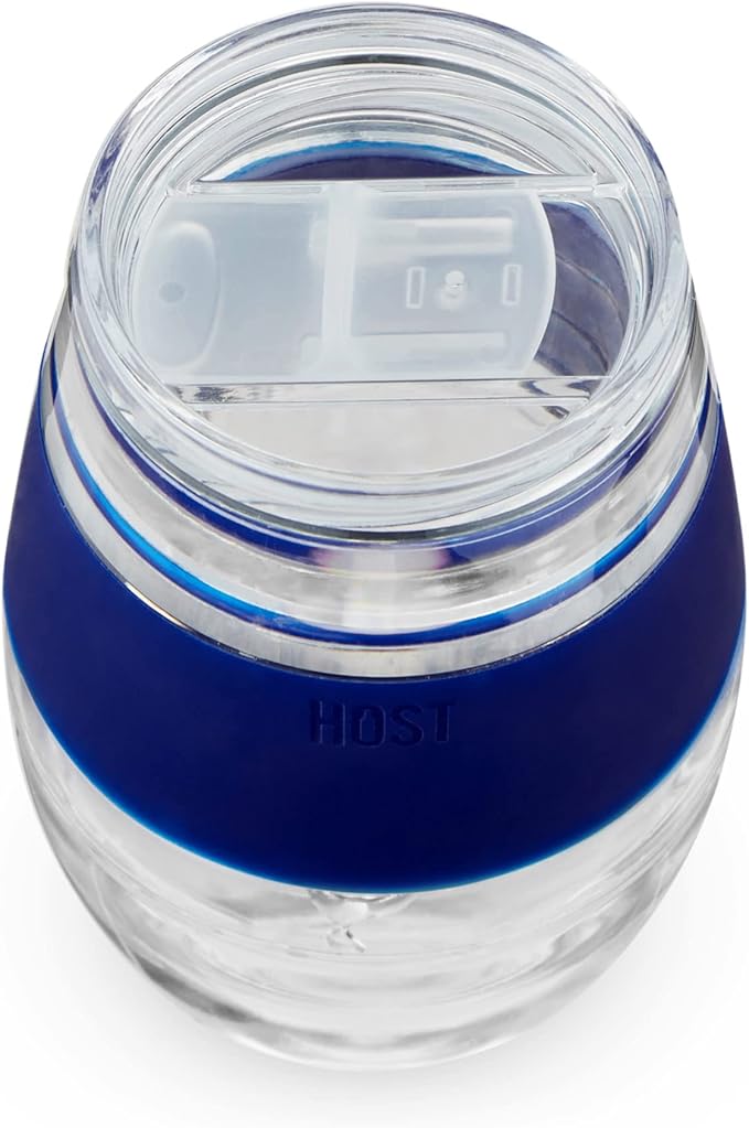 Host Cooling Wine Freeze Cup with Lid, Set of 2 Plastic Double Wall Insulated Tumbler Drink Cup with Freezing Gel for Red and White Wine, Blue