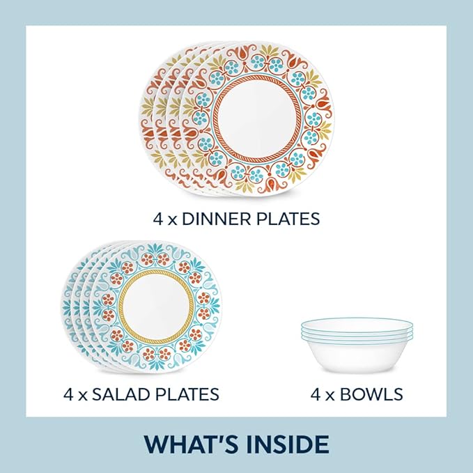 About This 12-PIECE SET: Includes (4) 10-1/4-inch dinner plates, (4) 8-1/2-inch lunch plates and (4) 18-oz soup/cereal bowls. This set... Read more
