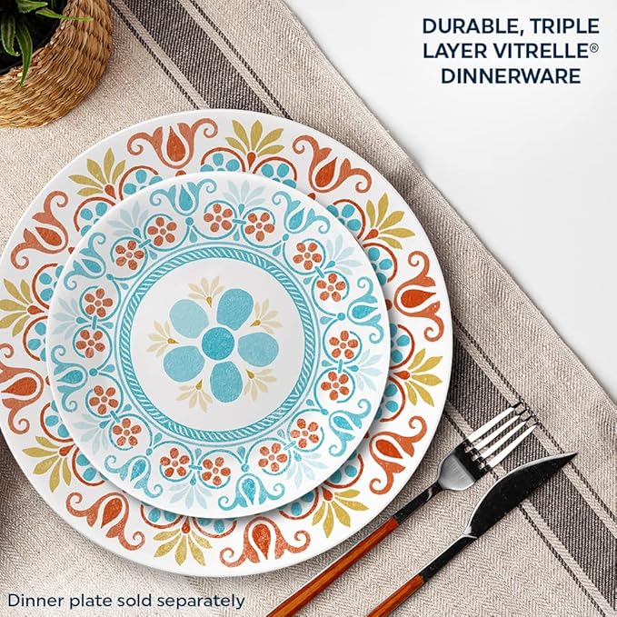 Corelle Vitrelle 6-Piece (6.75") Salad Appetizer Plates Set, Triple Layer Glass and Chip Resistant, Lightweight Round 6-3/4-inch Plates, Terracotta Dreams