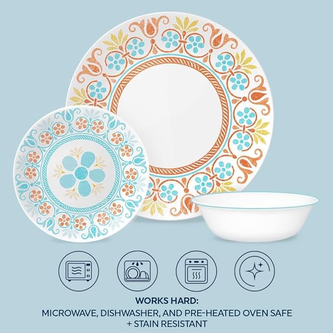 Corelle Terracotta Dreams Dinnerware Set for 6 18 Pieces Dinner Plates, Appetizer Plates, and 18 Oz Bowls Dishwasher, Microwave, and Freezer Safe Proudly Made in the USA