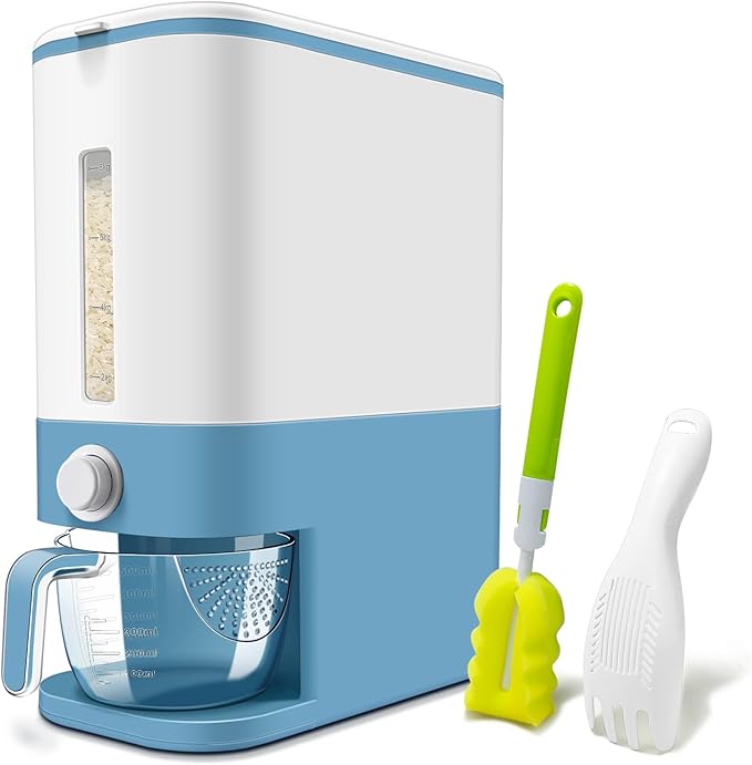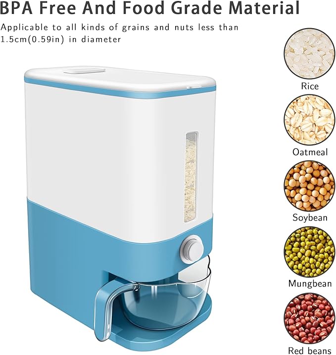 22-25 Lbs Rice Dispenser, Large Cereal Dry Food Storage Containers with Measuring Cup,BPA-Free Household for Kitchen Pantry Organization-Blue
