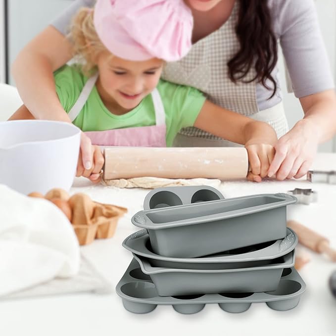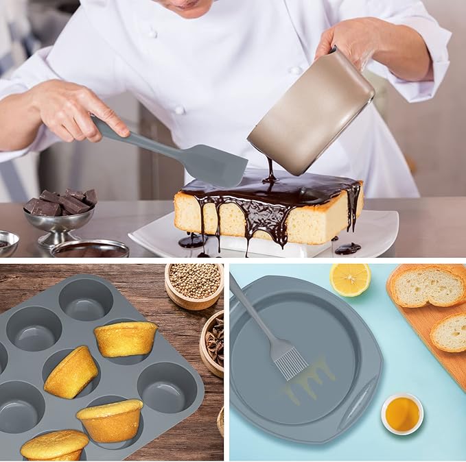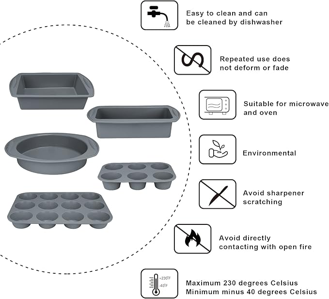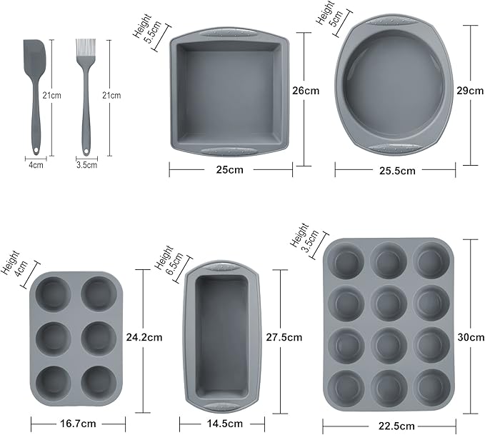 Economical 7in1 Nonstick Silicone Baking Cake Pan Cookie Sheet Molds Tray, Heat Resistant Bakeware Tools for Muffin Loaf Bread Pizza Cupcake