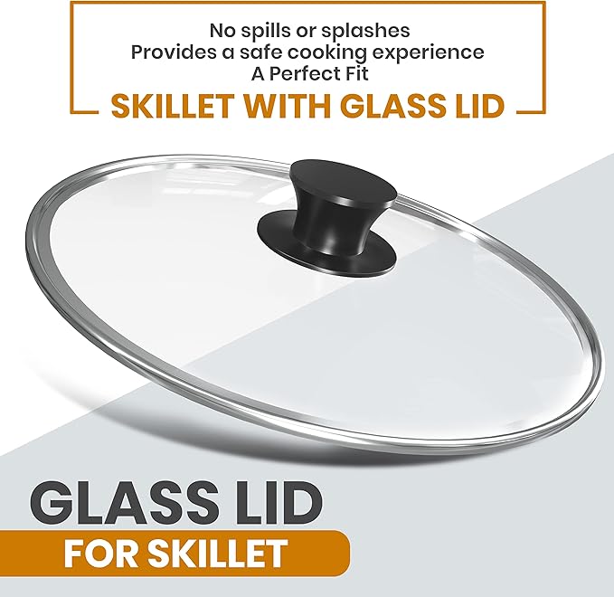 Utopia Kitchen Saute Fry Pan Pre-Seasoned Cast Iron Skillet With Lid, Frying Pan, Cast Iron Pan, Safe Grill Cookware for Indoor & Outdoor Use (1, Black, 10 Inch)